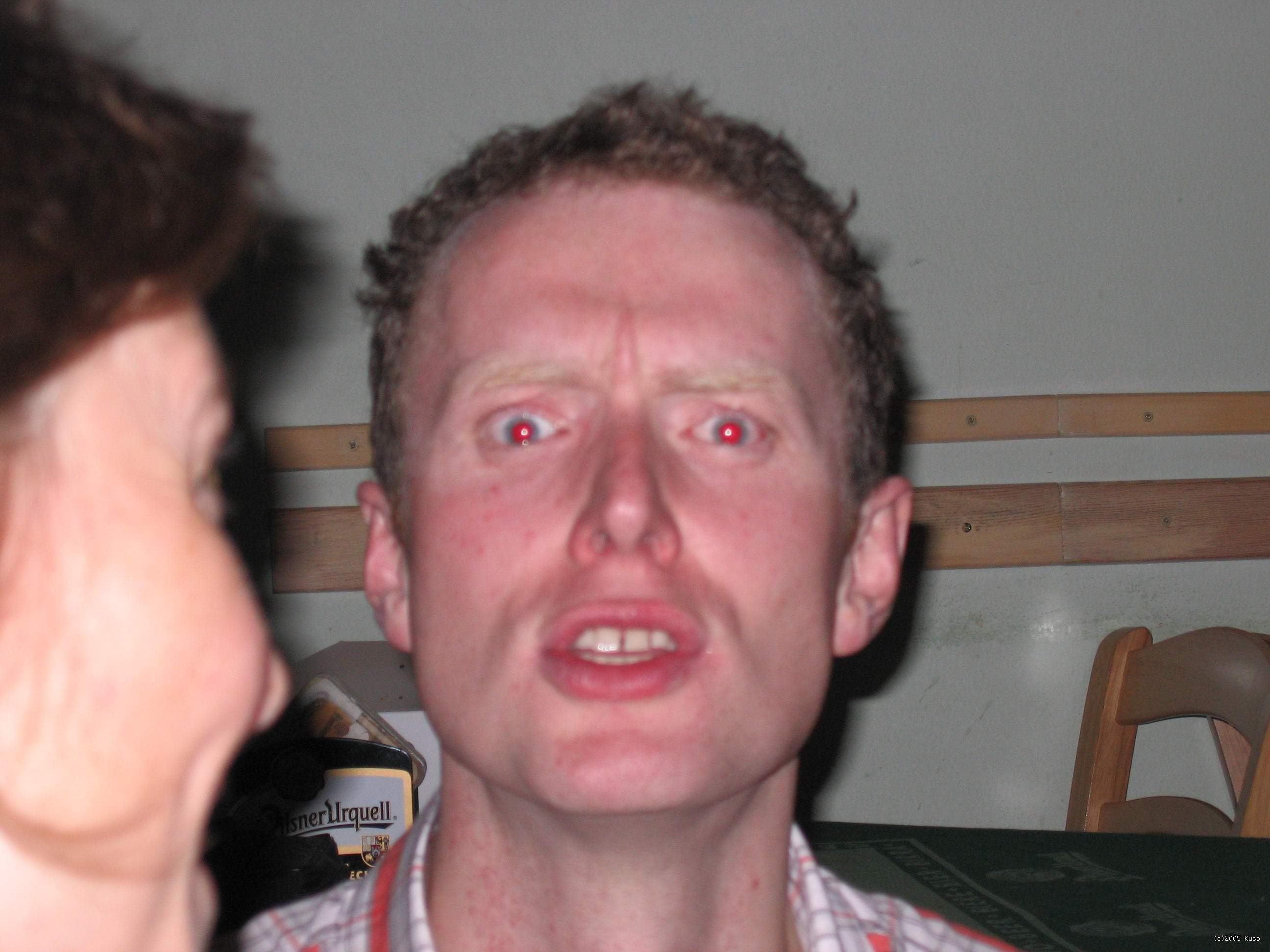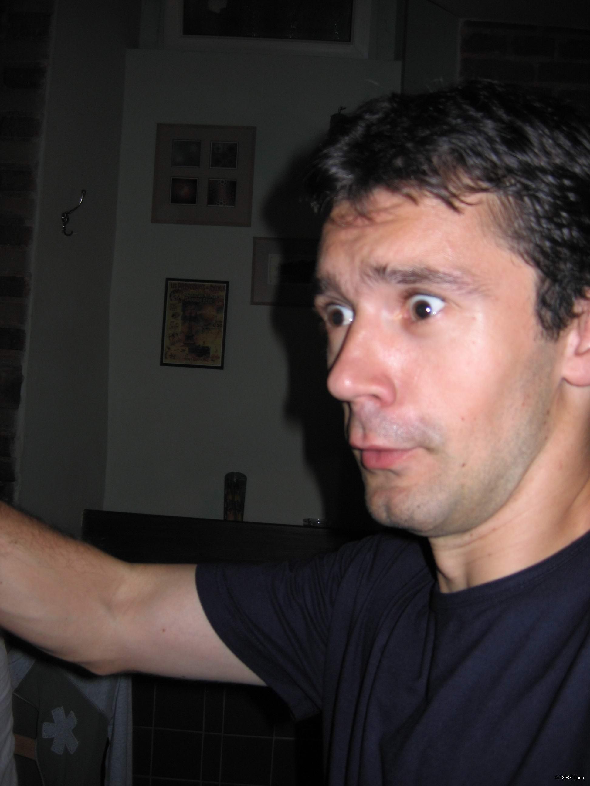| ... no tak mu říkam: "Neser, nebo ti rozhodím sandál!" No a on nepřestal, tak jsem nejdřív rozbil držku těm třem sráčům nahoře, pak jsem děvenko skočil z okna ty tři patra no a dole jsem ještě nakopal prdele těm jejich dvěma gorilám ... |