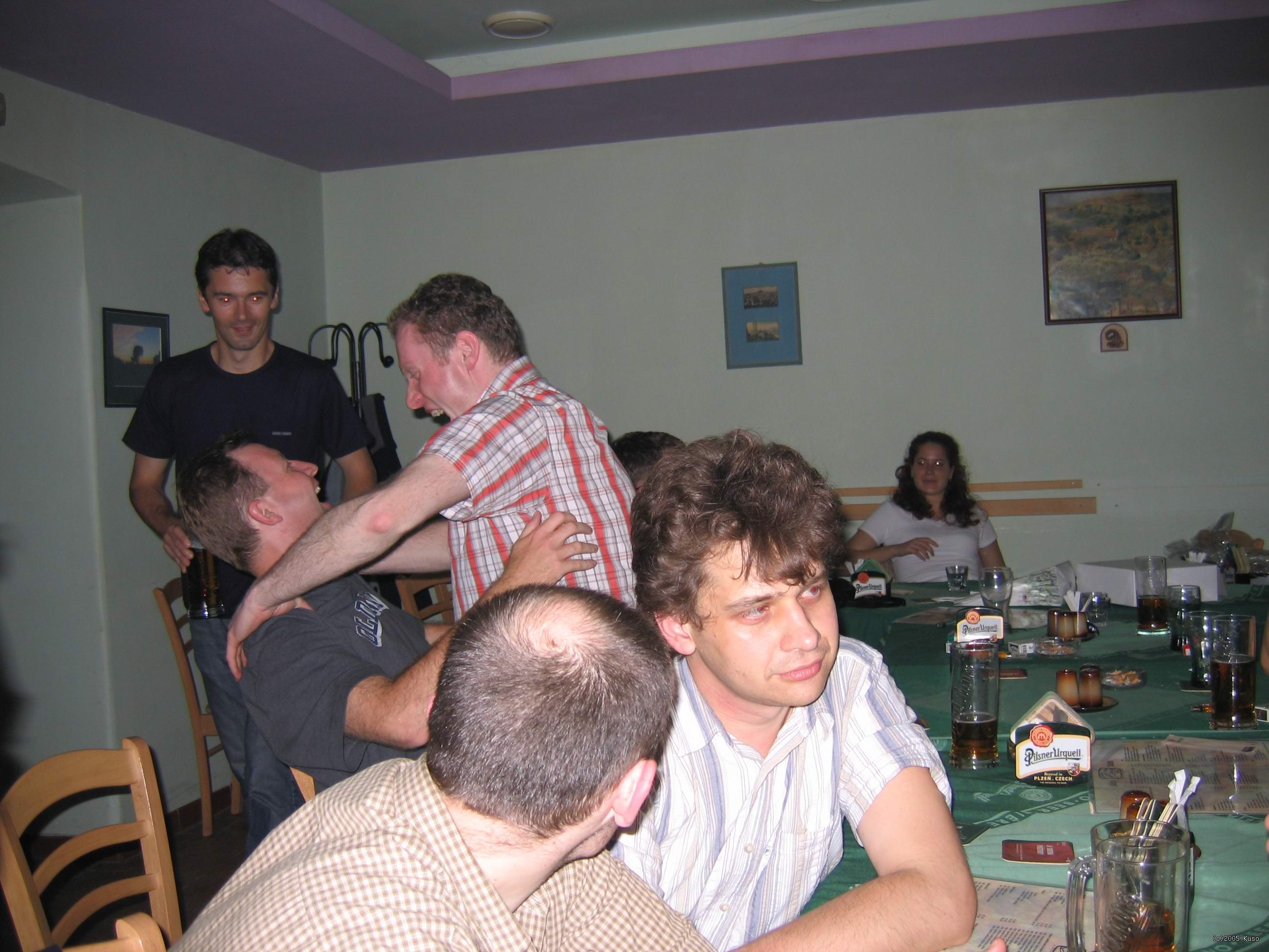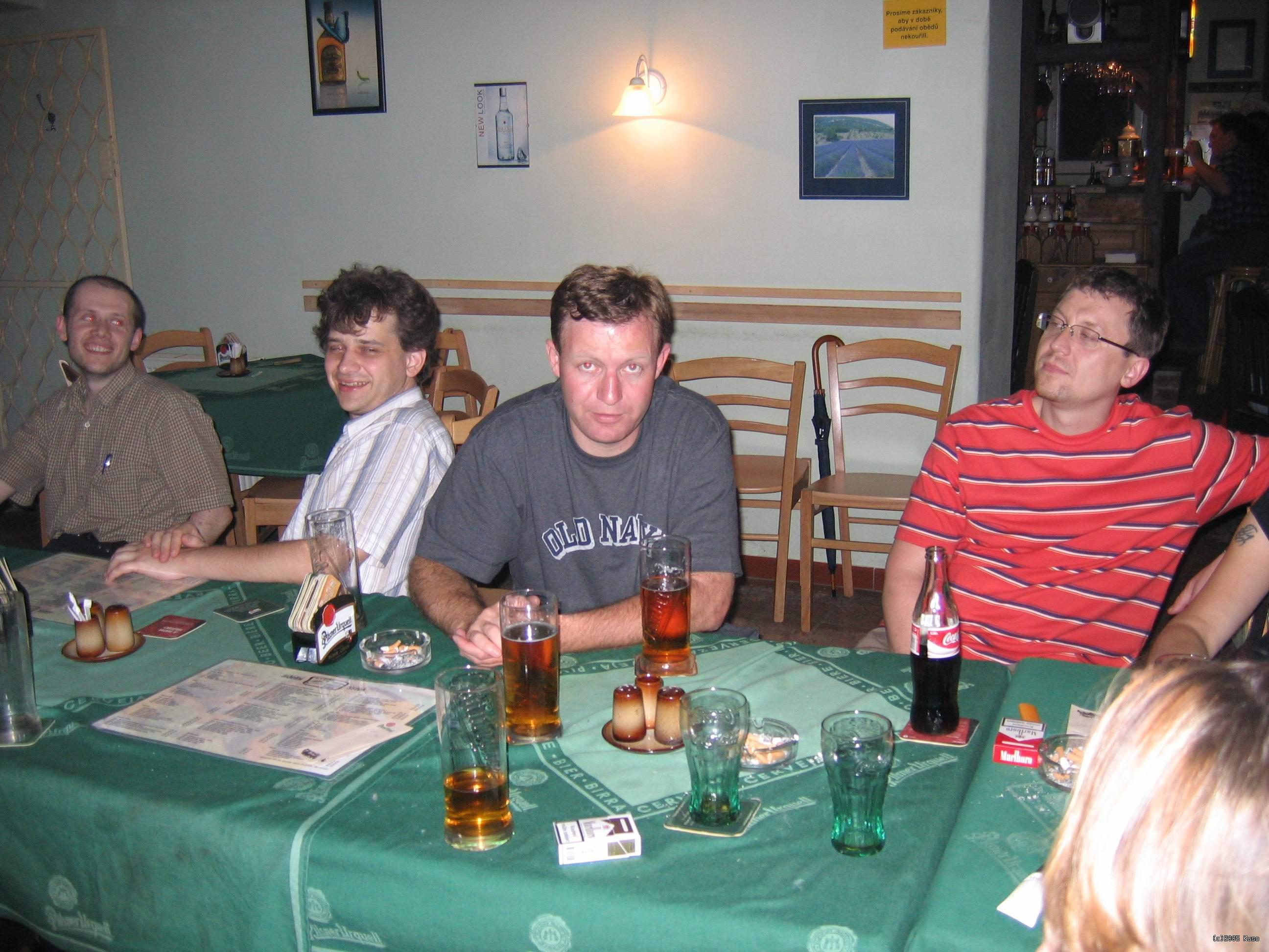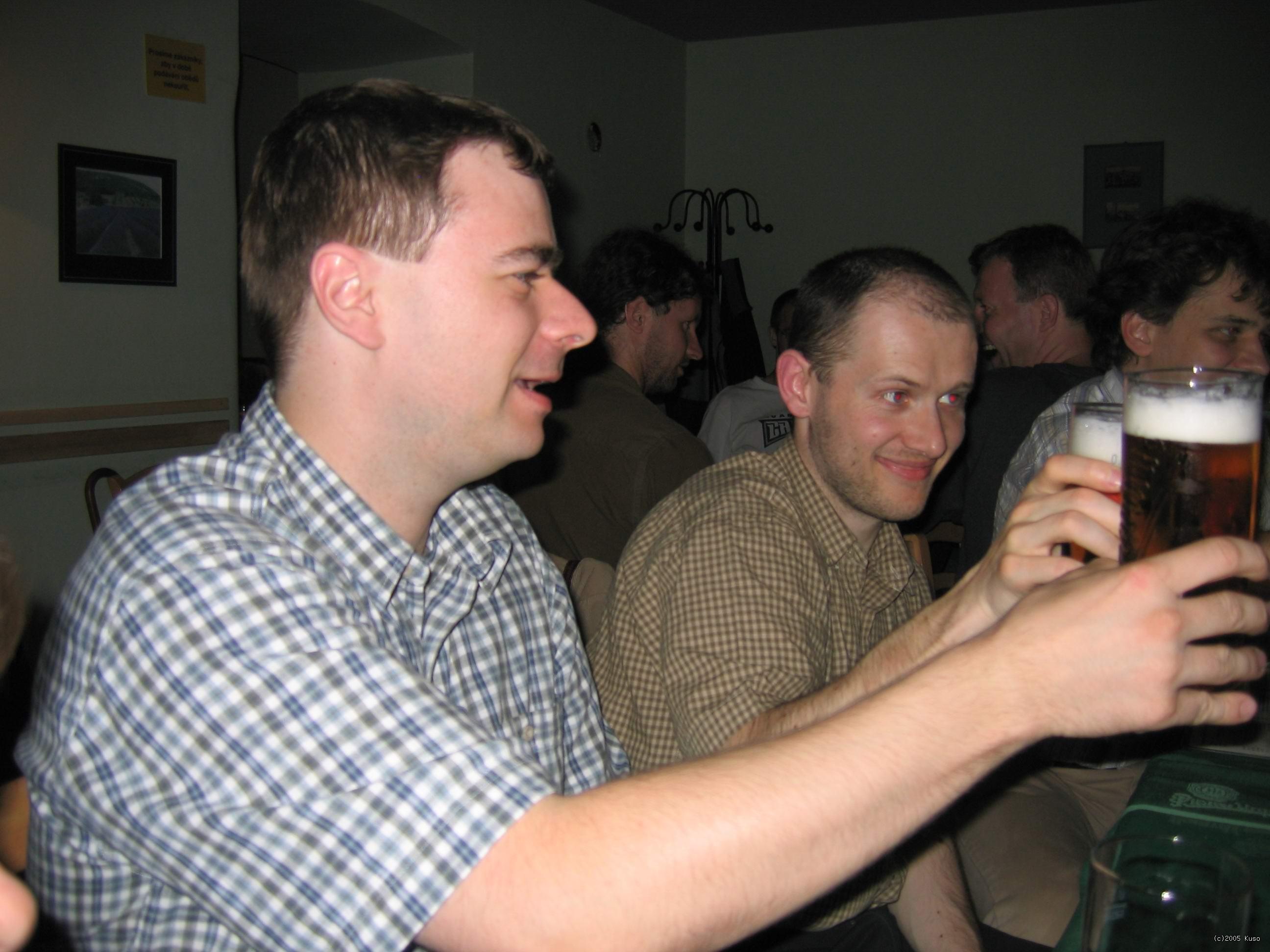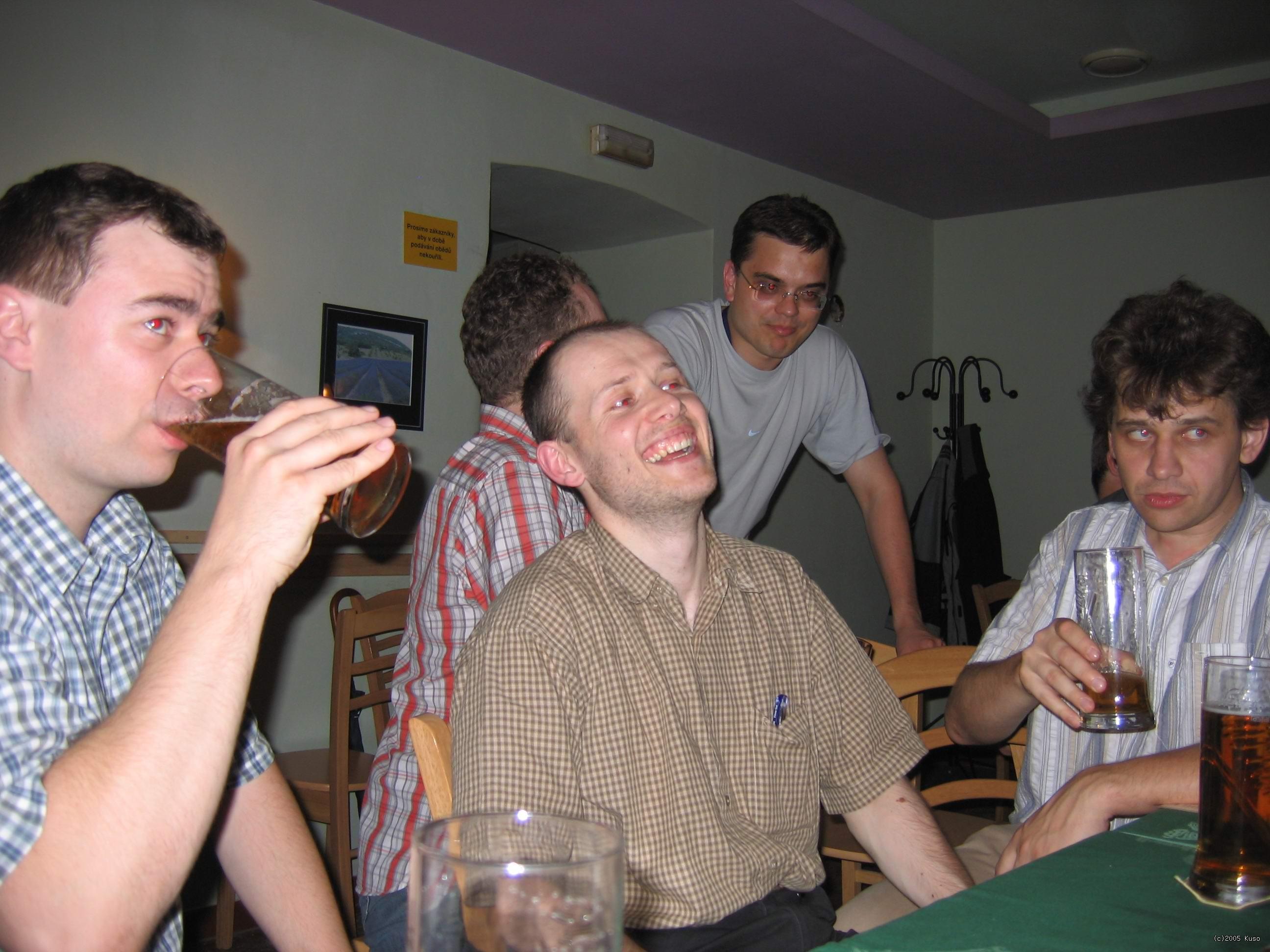 | Podľa kvanta nealkoholických nápojov vidíte, že nesedím na svojom mieste. Zato Radovan má príručnú batožinu vždy po ruke. |