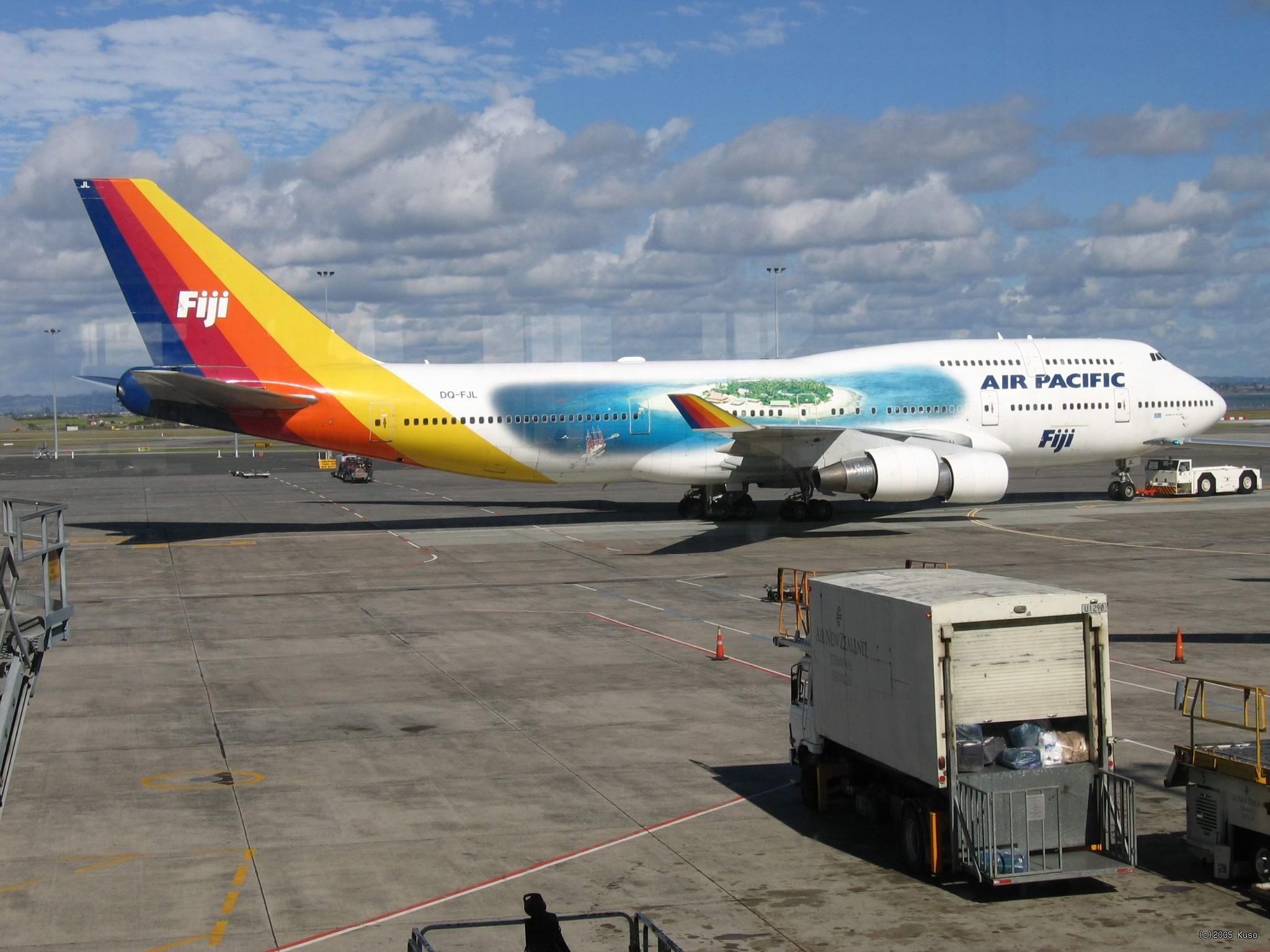 Air Pacific - najlepšie sa cíti na zemi Ale čo sa nestalo, keď sme mali nastúpiť do lietadla, dozvedeli sme sa, že sa čosi pokazilo a neboli to len vŕzgajúce dvere, ale čosi vážnejšie, takže neodletíme. A že odletíme možno tak o dva dni. Prúser! O dva dni už máme byť na lodi, ktorá s nami bude brázdiť Fijanské ostrovy. Nasledovala noc a deň plná stresov, o ktoré sa postarali Air Pacific. Našťastie Vlado dostal dobrý nápad vybaviť náhradný odlet vo vlastnej réžii a vyšlo to. Šikulka ten chalan.