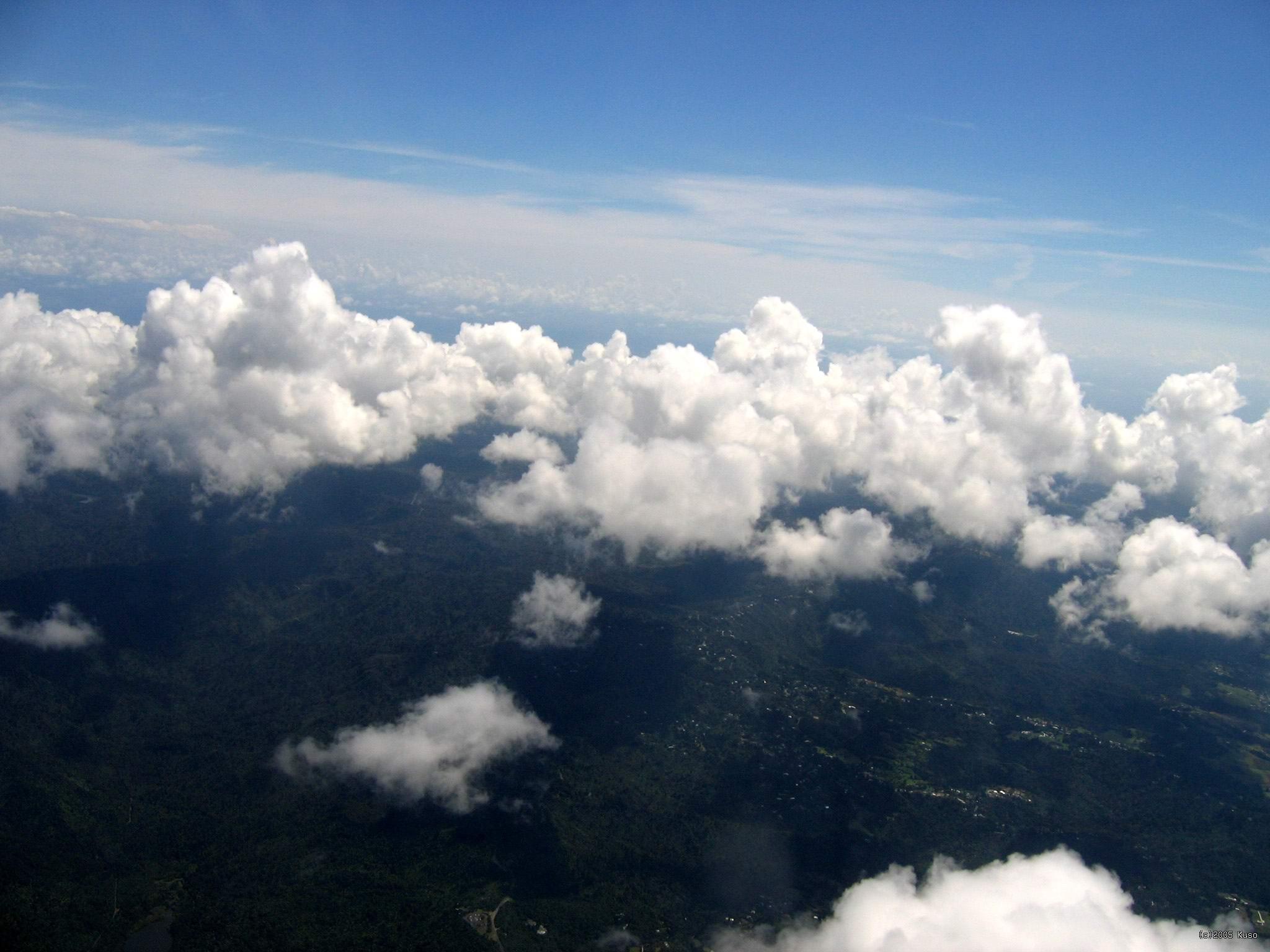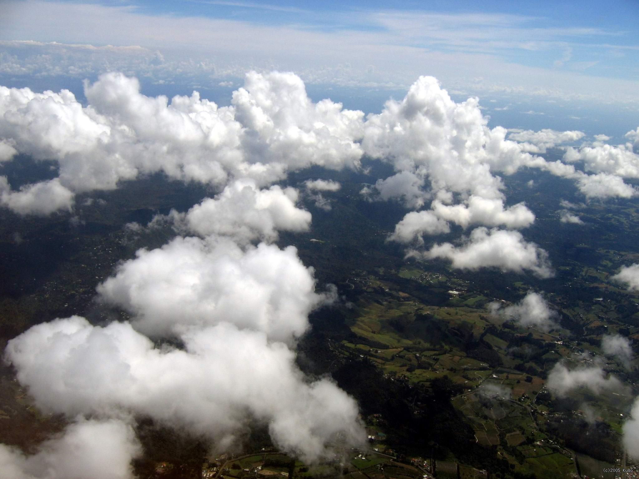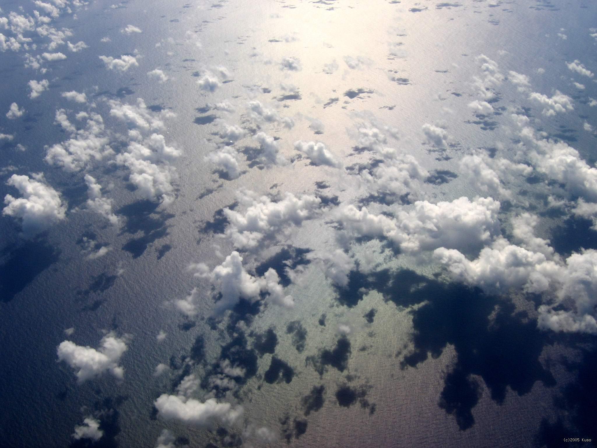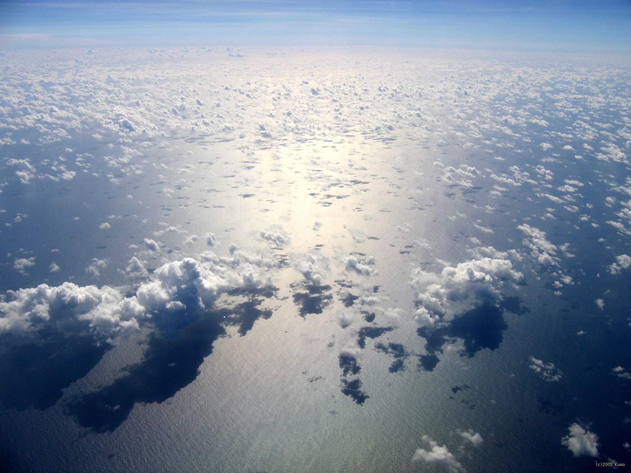 Auckland -> Nadi Takto vyzerá pohľad na oblaky v rovníkovej oblasti. Keďže slnko je priamo v nadhlavníku, každý oblak má svoj tieň priamo pod sebou a vyzerá to takto.