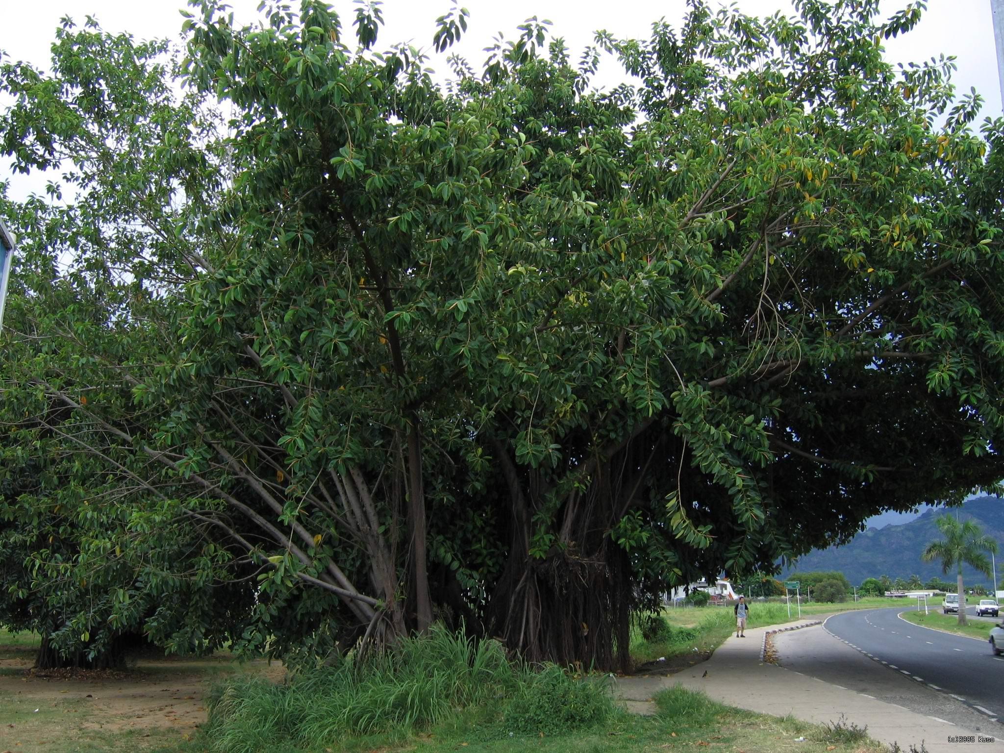 Fiji - Nadi - fikus Keď sme vystúpili z lietadla v hlavnom meste Fiji - Nadi (čítaj Nandi), ovalilo nás brutálne teplo. A organizovaná hudba domorodcov pre prichádzajúcich turistov. No a pred letiskom som videl takýto strom. Čo by ste tak povedali, že to je?