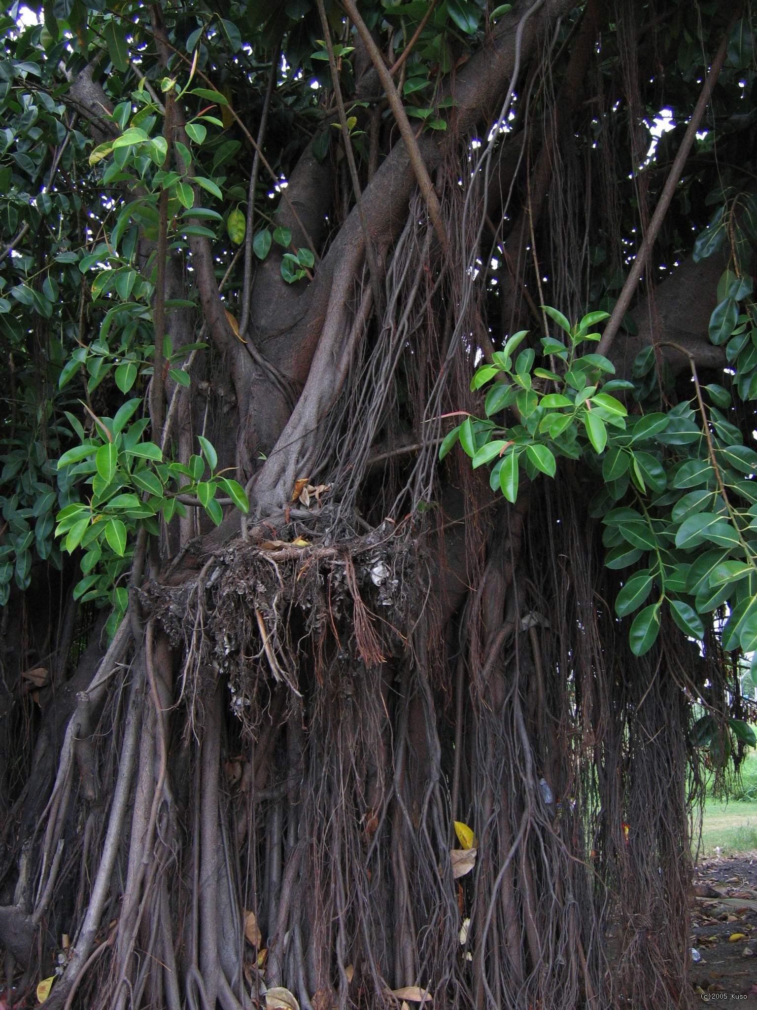 Fiji - Nadi - fikus Keď som prišiel bližšie, musel som sa smiať. Tak moja mama doma roky rozmaznávala svoj fikus, div že mu nepostavila vlastnú izbu, a narástol je asi taký veľký ako tento konárik (tak 2 metre). A tu je to stromisko ako dom.