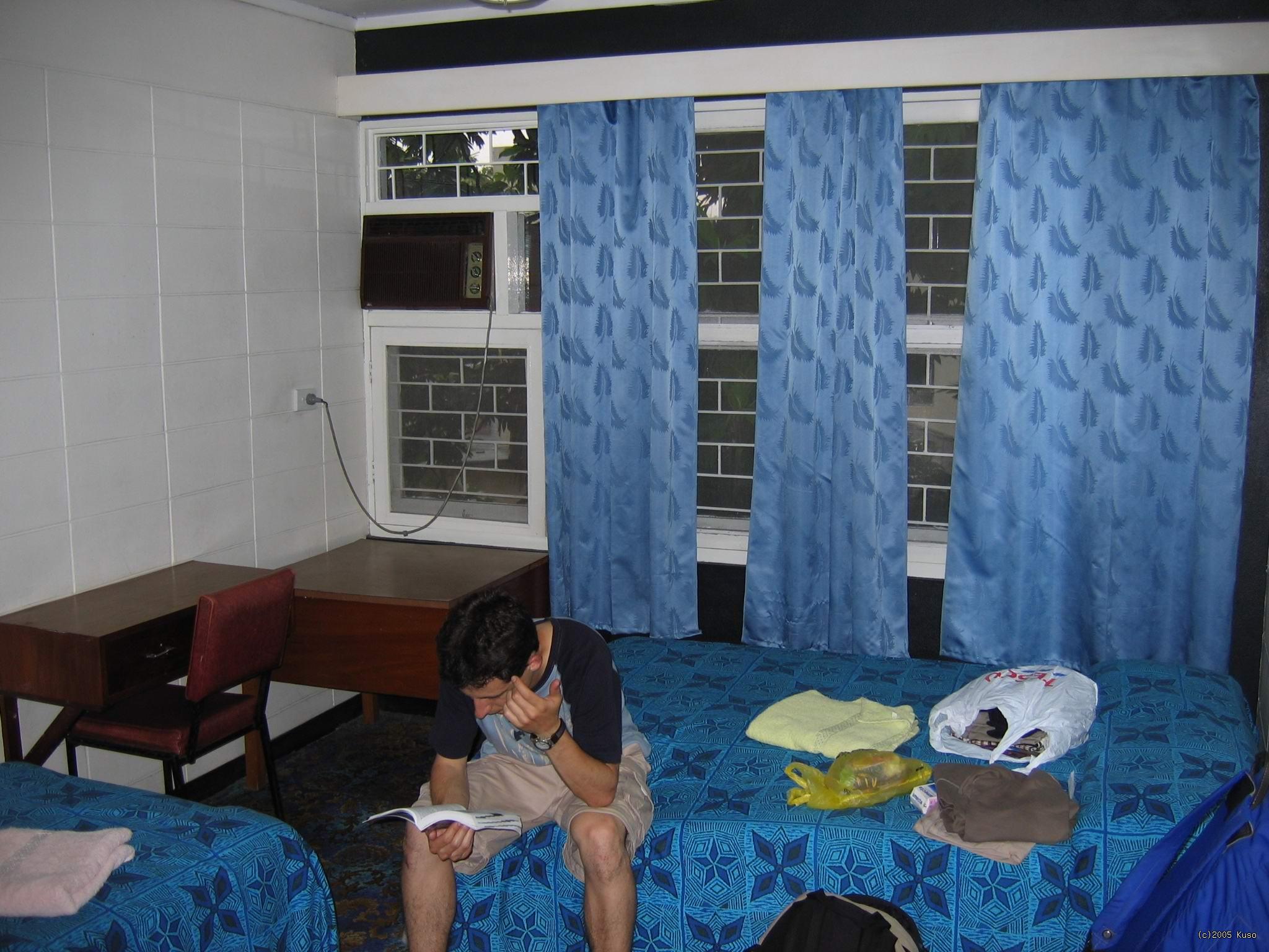 Fiji - Lautoka - hotel Takto úžasne vyzerala naša izba. Modrá je dobrá ... a teplo ako sviňa.