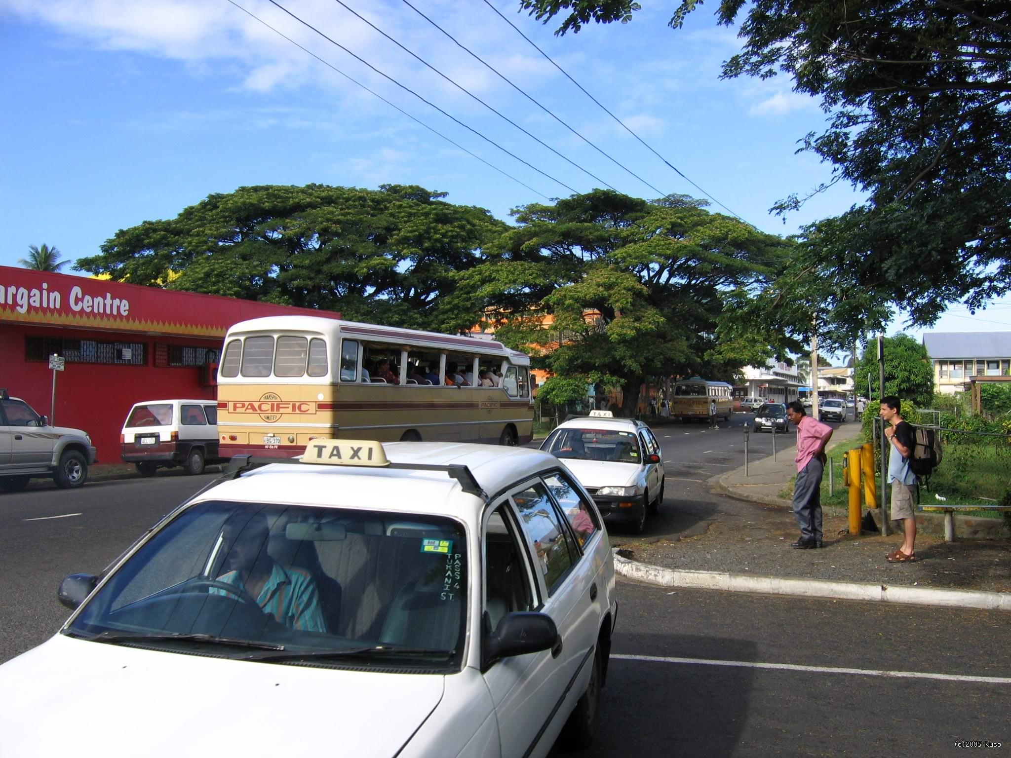 Fiji - Lautoka V turistickom sprievodcovi som sa dočítal, že turisti, ktorí prídu na Fiji sa delia na 2 kategórie: Lúzrov, ktorí nenaletia pouličným predavačom, ktorí predávajú drevené meče (na ktoré vám rýchlo vygravírujú vaše meno, aby vo vás vyvolali pocit, že keď ho tam vyrezali, tak si ho už musíte kúpiť) a potom ľutujú a týchnormálnych, ktorí sa na nich vyfakujú. My sme stretli dvoch príjemne sa tváriacich chlapíkov, ktorí sa veľmi zaujímali o to, kto sme a nechali sa od nás pozvať na sprajt. Jeden mi úžasne lichotil, aký som úžasny chalan a potom vytiahol drevený meč, na ktorý mi vyrezal moje meno a ja som ho od neho kúpil. Vlado bol ten normálny.