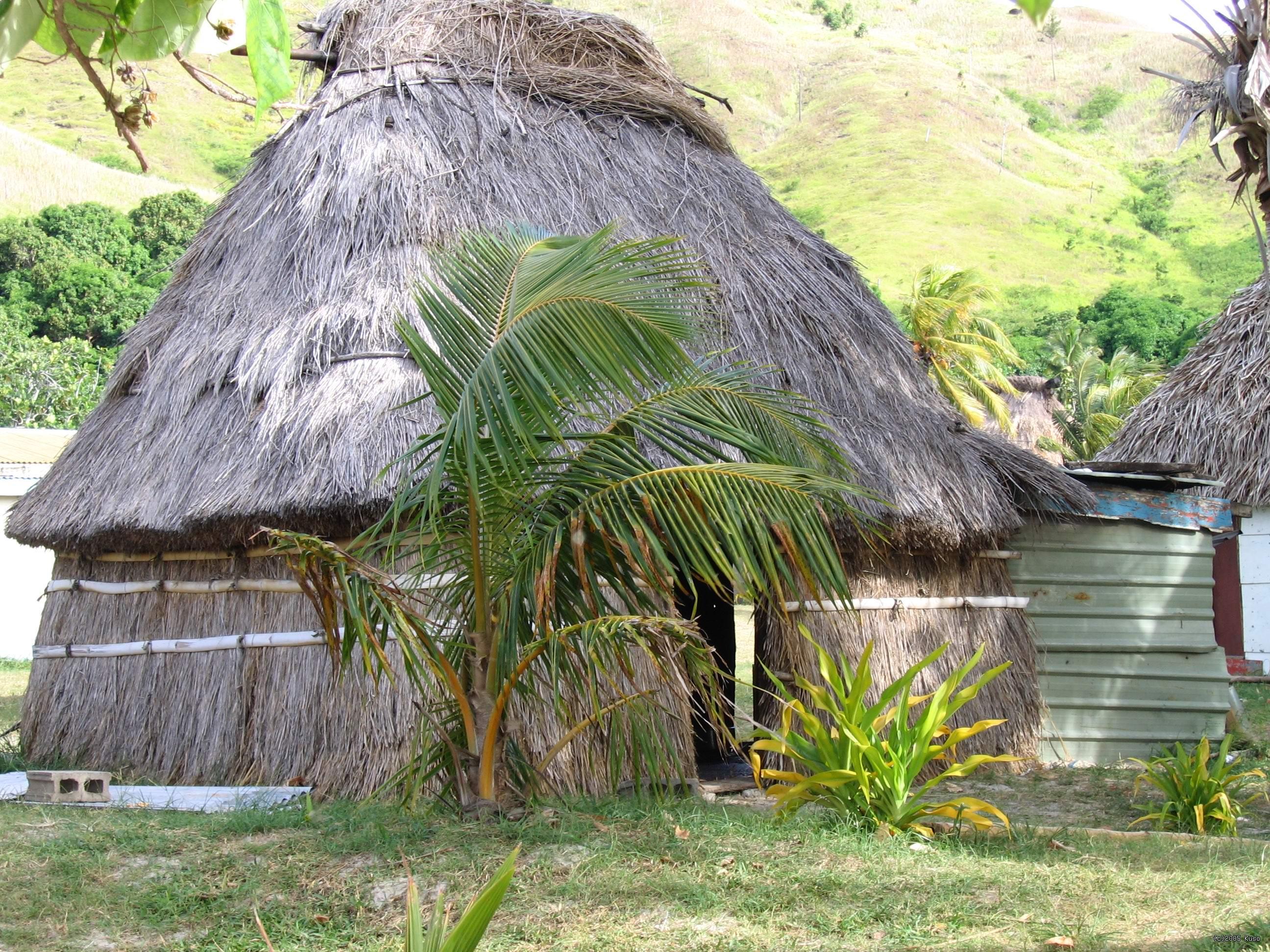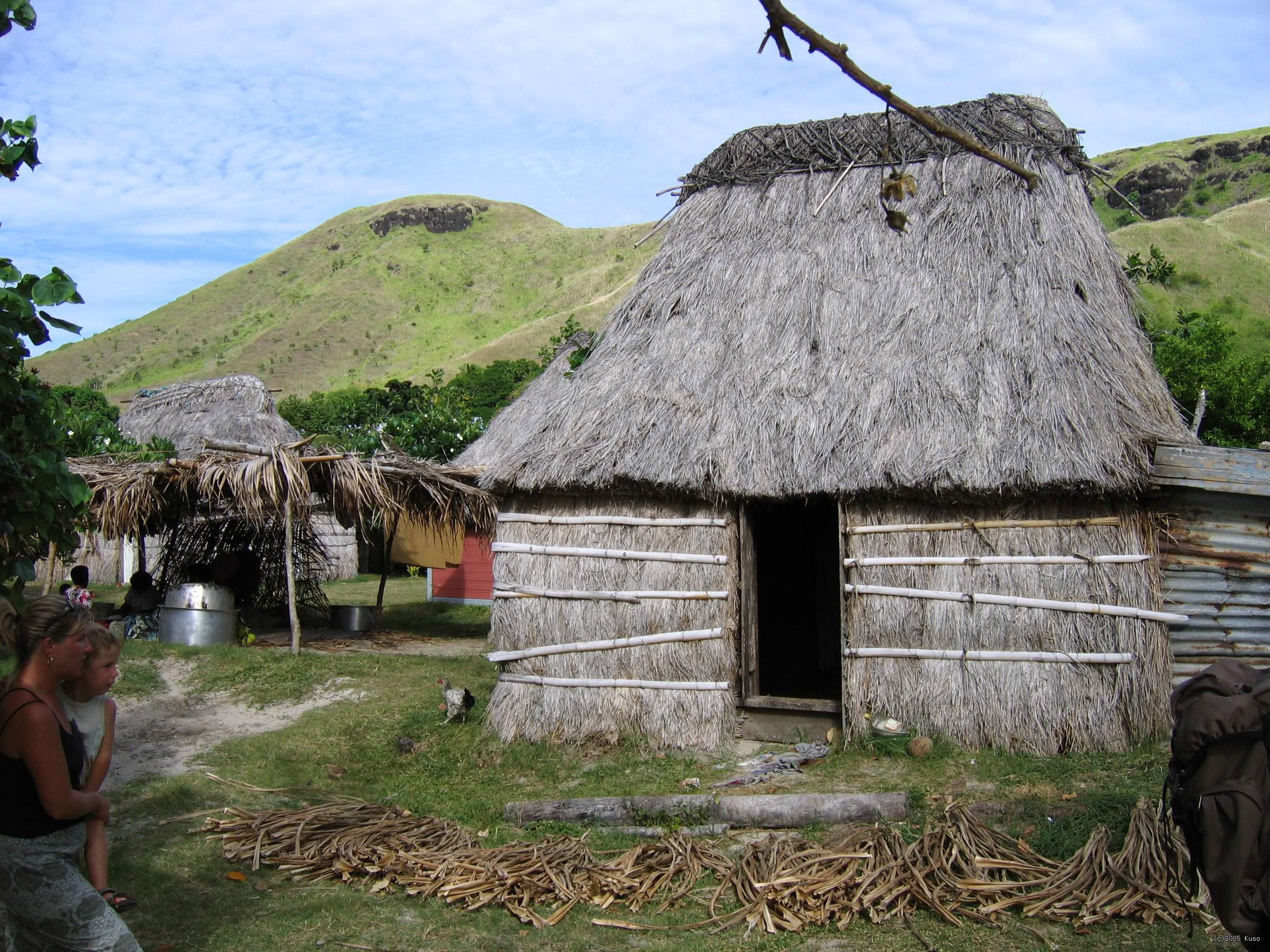 Fiji - Yasawa Islands - Domorodci Toto je tradičná verzia ich príbytkov. Vedľa je tradičná verzia sliepky. |