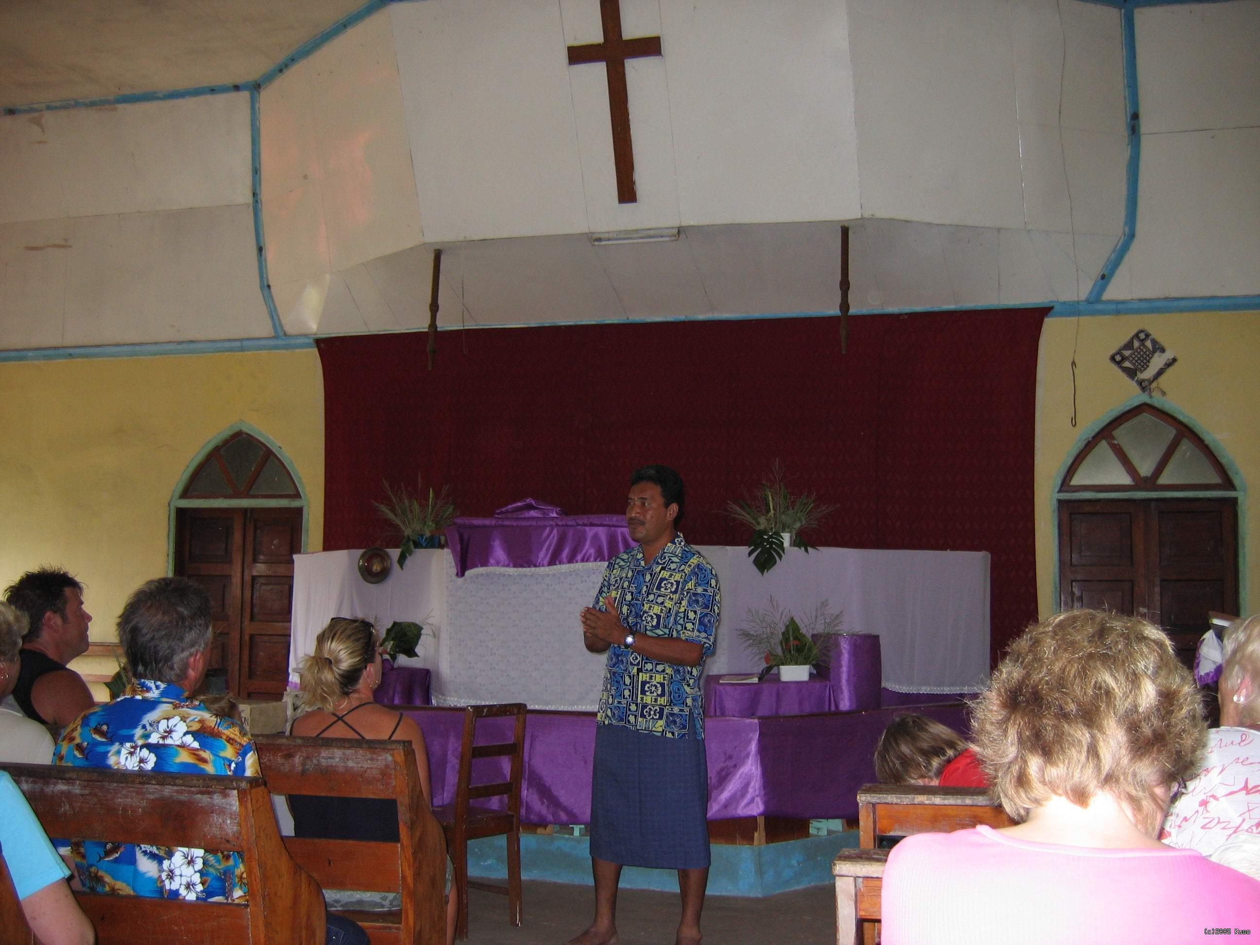 Fiji - Yasawa Islands - Domorodci Interiér kostola. V Zemianskom Podhradí je ešte stále krajší. Aj kazateľ. |