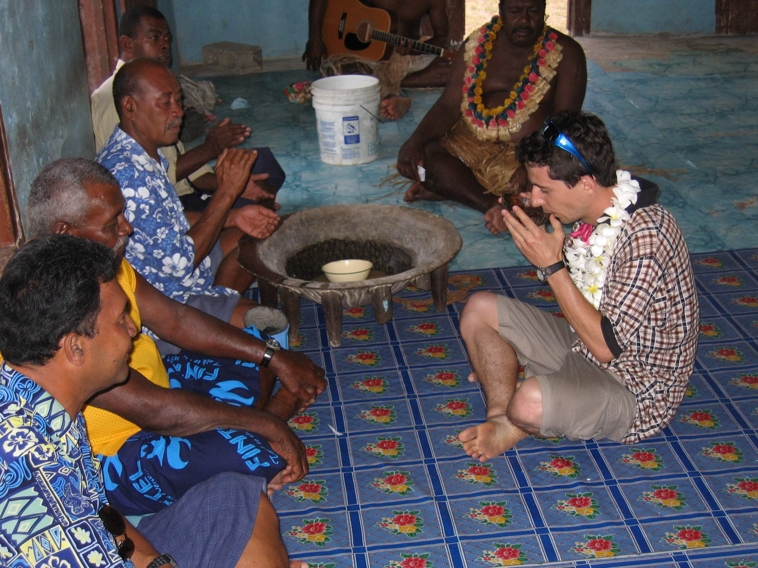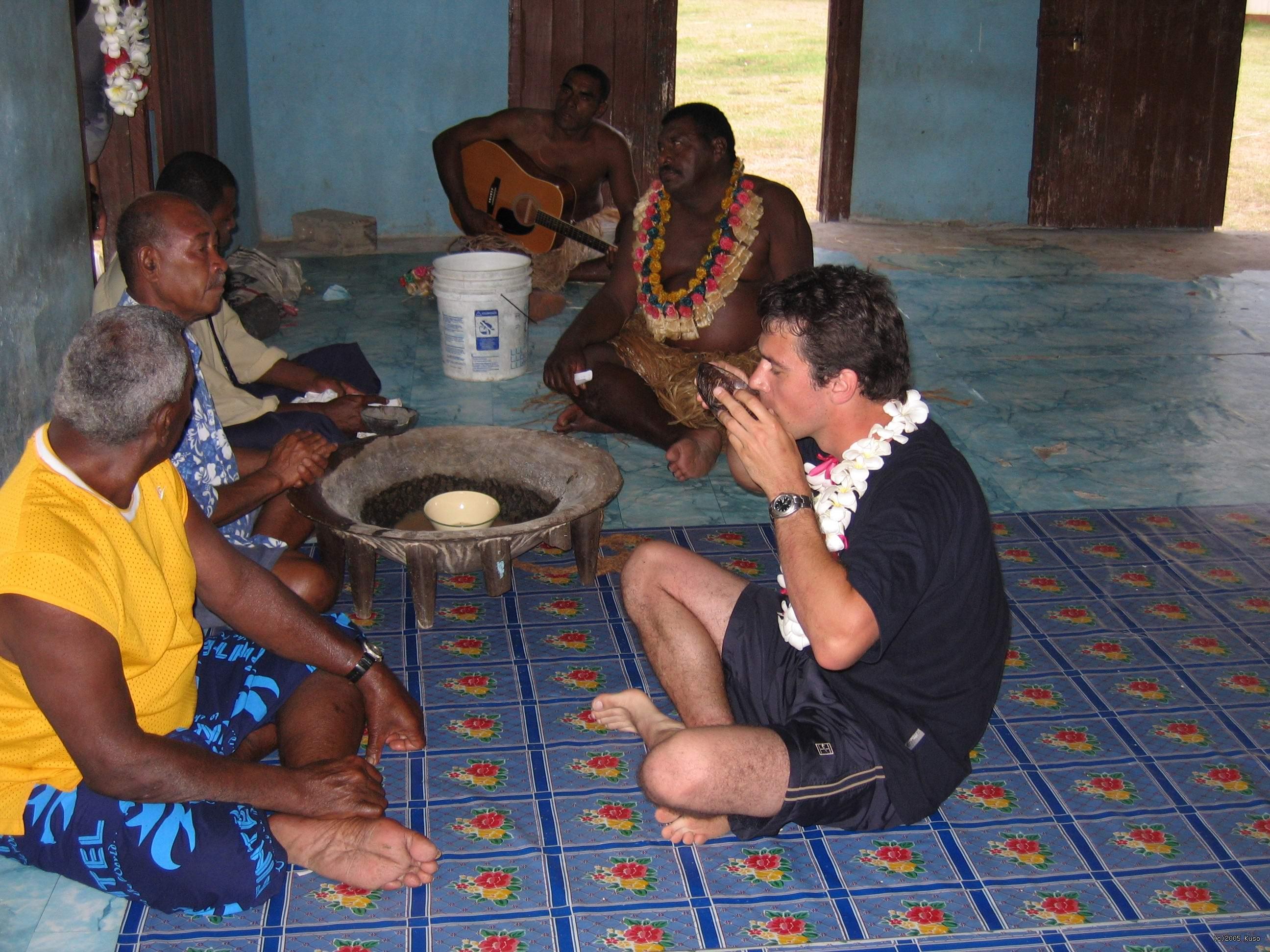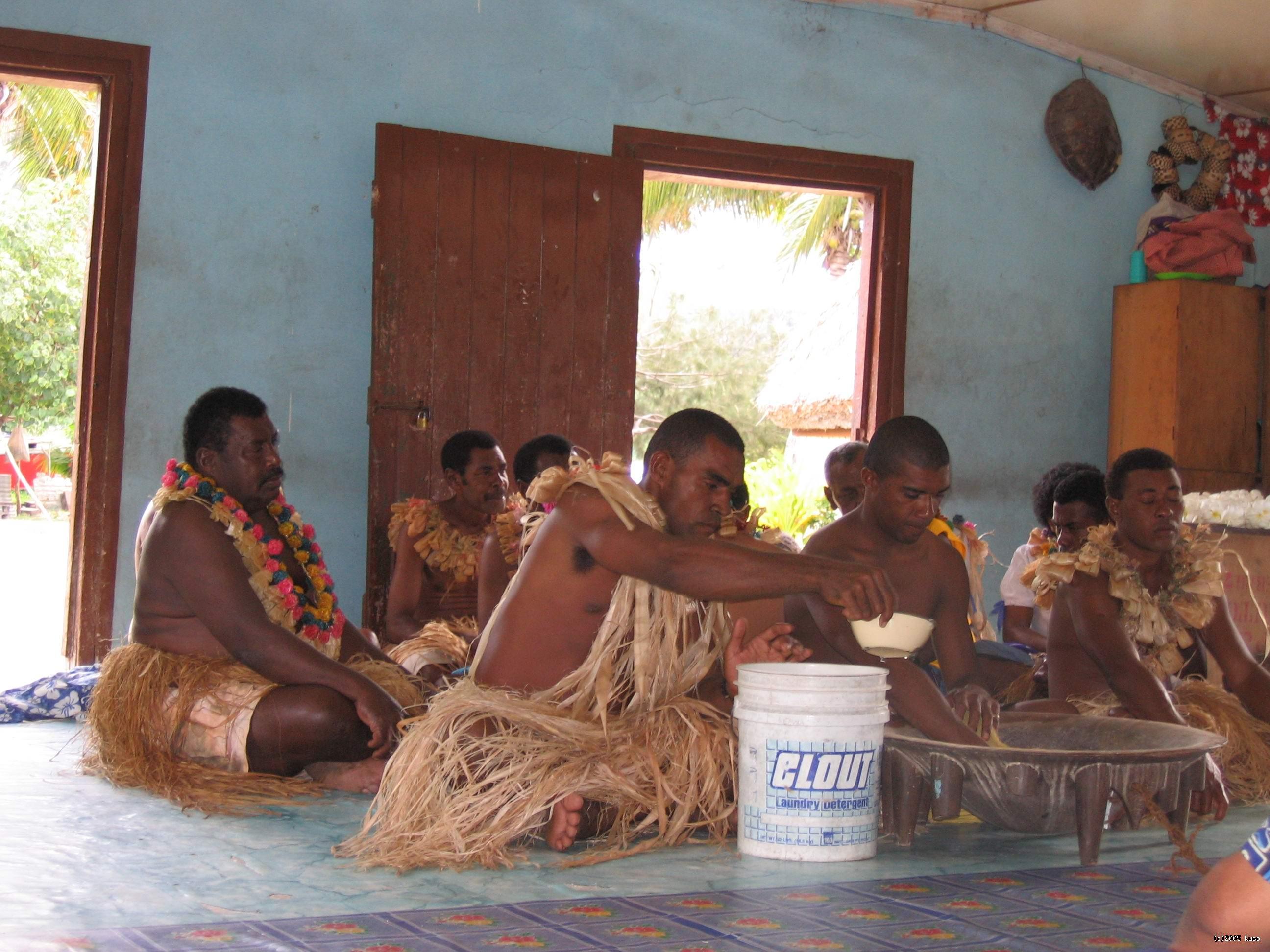 Fiji - Yasawa Islands - Domorodci Potom doplnil tekutiny - dal kavu aj s ceremoniálom okolo toho. Posed, práca rúk, texty. Všetko ako má byť. |
