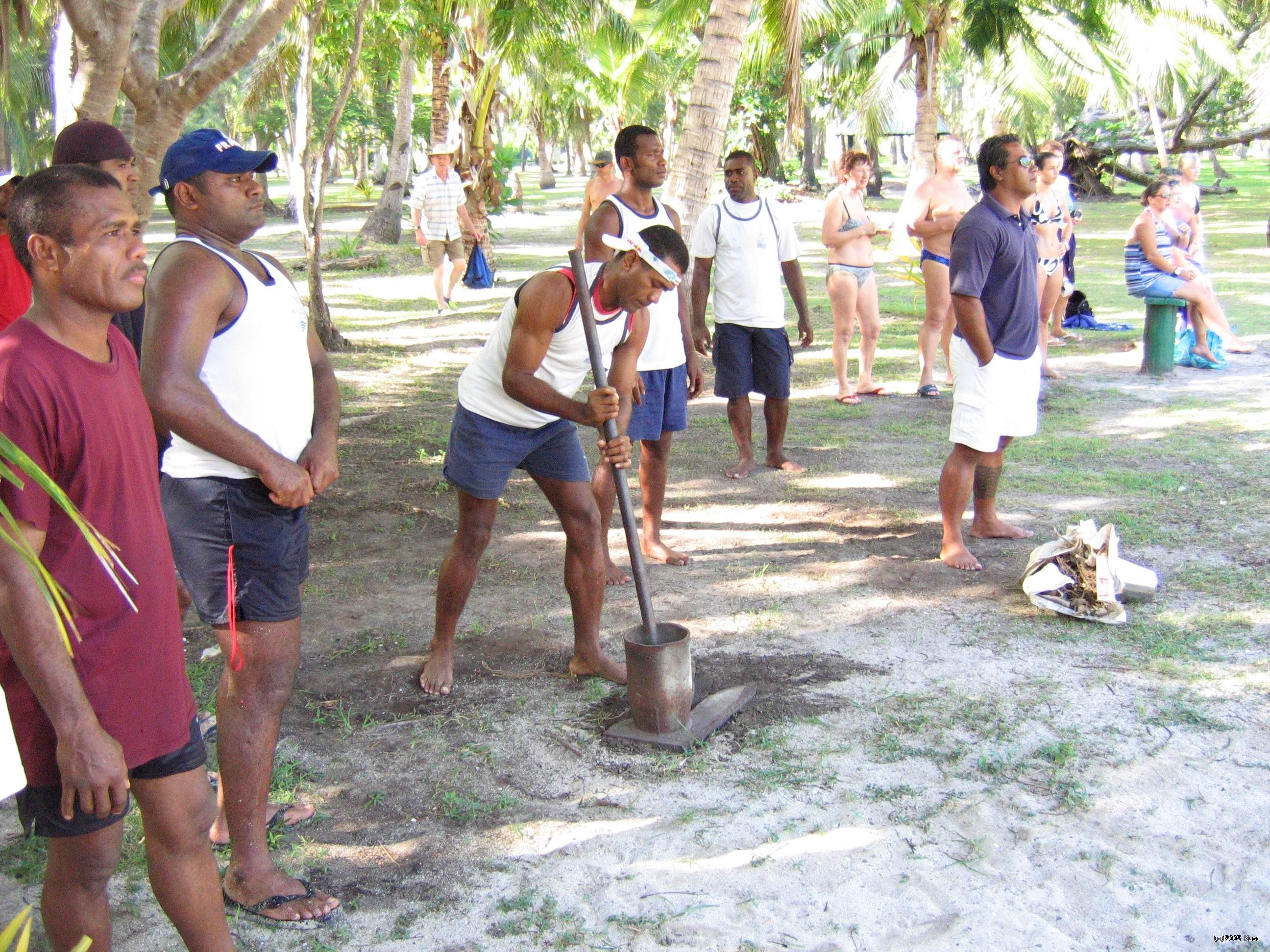 Fiji - Yasawa Islands A tu je príprava kavy na večer - takto sa rozdrví sušený koreň na prášok. Chlapík ju mlátil asi hodinu. Fakt. |