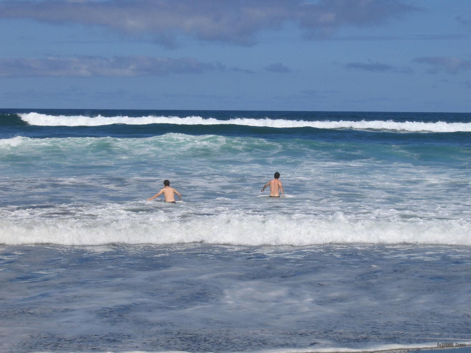Vlny Tasmánskeho mora Voda bola studená a mohutne sa vlnila, takže sme využili prvú šancu v živote zaskákať si do vĺn Tasmánskeho mora.
