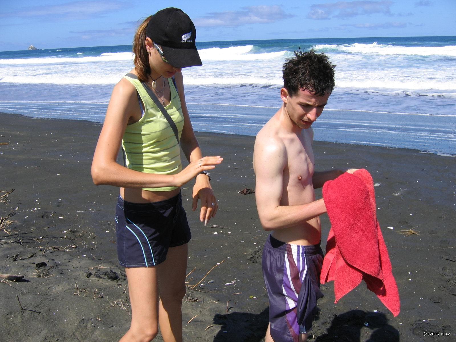 Muriwai Beach Presunuli sme sa na iné miesto na pobreží, kde sme sa chystali navštíviť kolóniu Ganetov. Žofia nám ešte zapózovala.