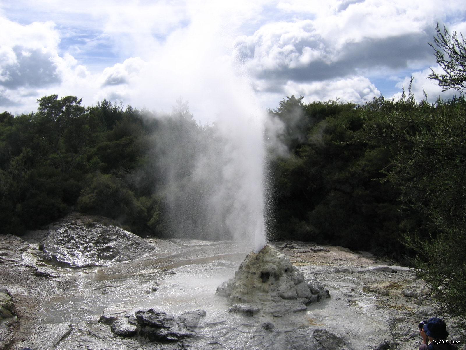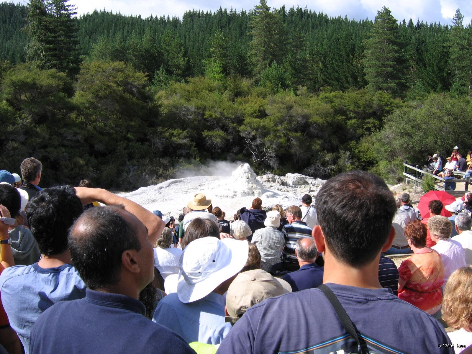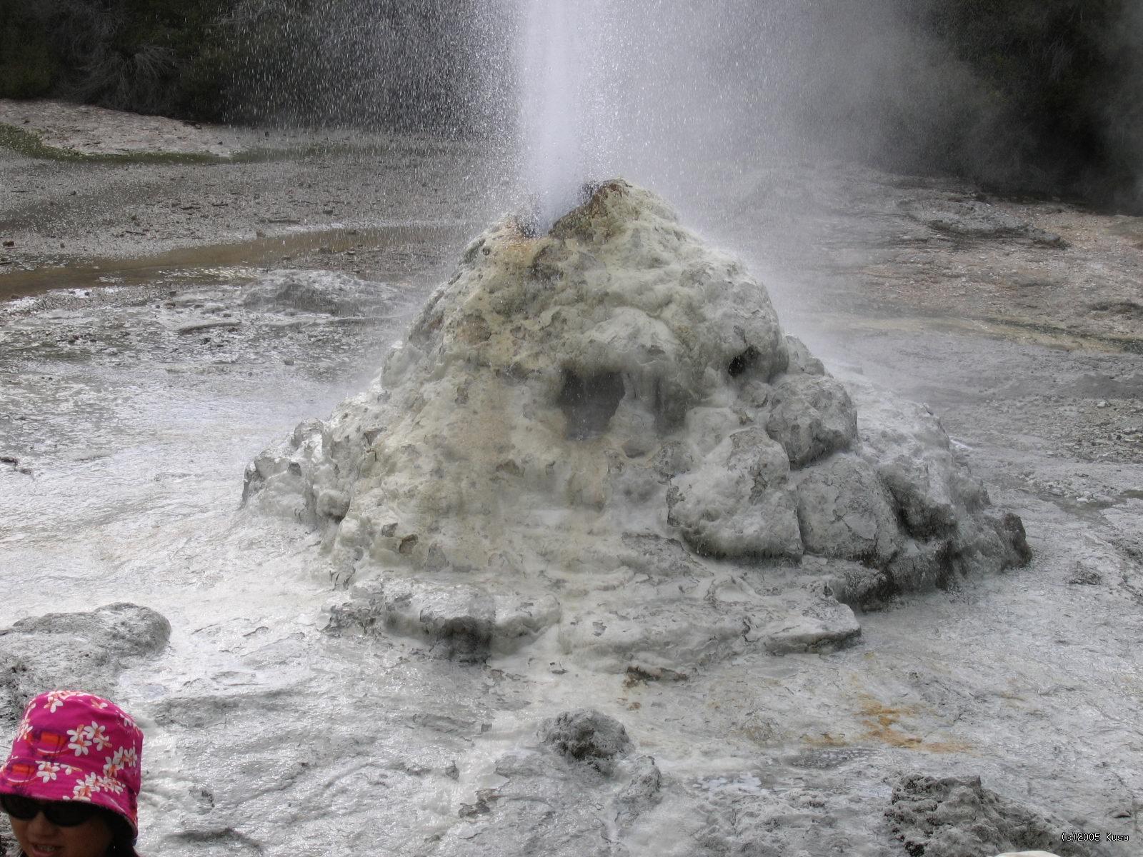 Rotorua. Najznámejšia geotermálna oblasť na Zélande. Prehliadka toho, čo dokáže geotermálna energia. Gejzíry, krátery, bublajúce bahno, para, syčanie, síra.